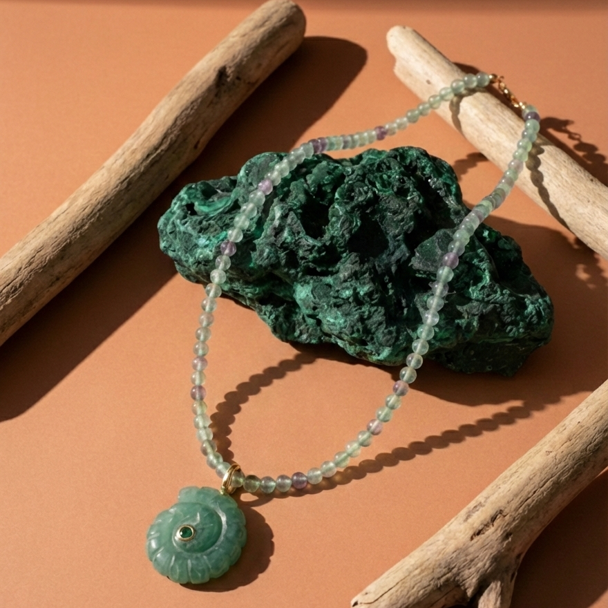İlk BiniBeca Next kolyemiz, değerli müşterilerimizden birine ait. Bu kolyeyi Singapur'a yaptığı bir seyahatte Jaana Galerisi'nden satın almış. Kolyede çok sayıda şeftali kuvars boncuk dizisi, damgalı gümüş detaylar ve muhteşem bir yeşim kolye ucu bulunuyor. Kesinlikle bir koleksiyon parçası ve koleksiyonumuzda yer almasından gurur duyuyoruz. Fiyat talep üzerine mevcuttur.