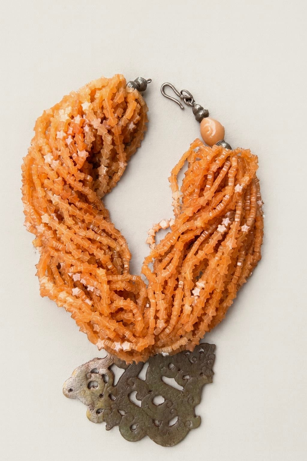 Our very first BiniBeca Next necklace belongs to one of our dear customers. She has acquired this necklace on a journey to Singapour, from the Jaana Gallery. The necklace has multiple strands of peach quartz beads, stamped sterling silver details and a magnificent jade pendant. It is definitely a collector's item and we're proud to have it as part of our collection. Price available upon request.
