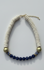 A brand new take on our Tortuga style, with smaller and finer beads, the Lapis Tortuga is created with bone beads, swirl carved Lapis Lazuli beads and 100 years old antique Venetian glass beads. Almost a collectible item and designer's favorite.