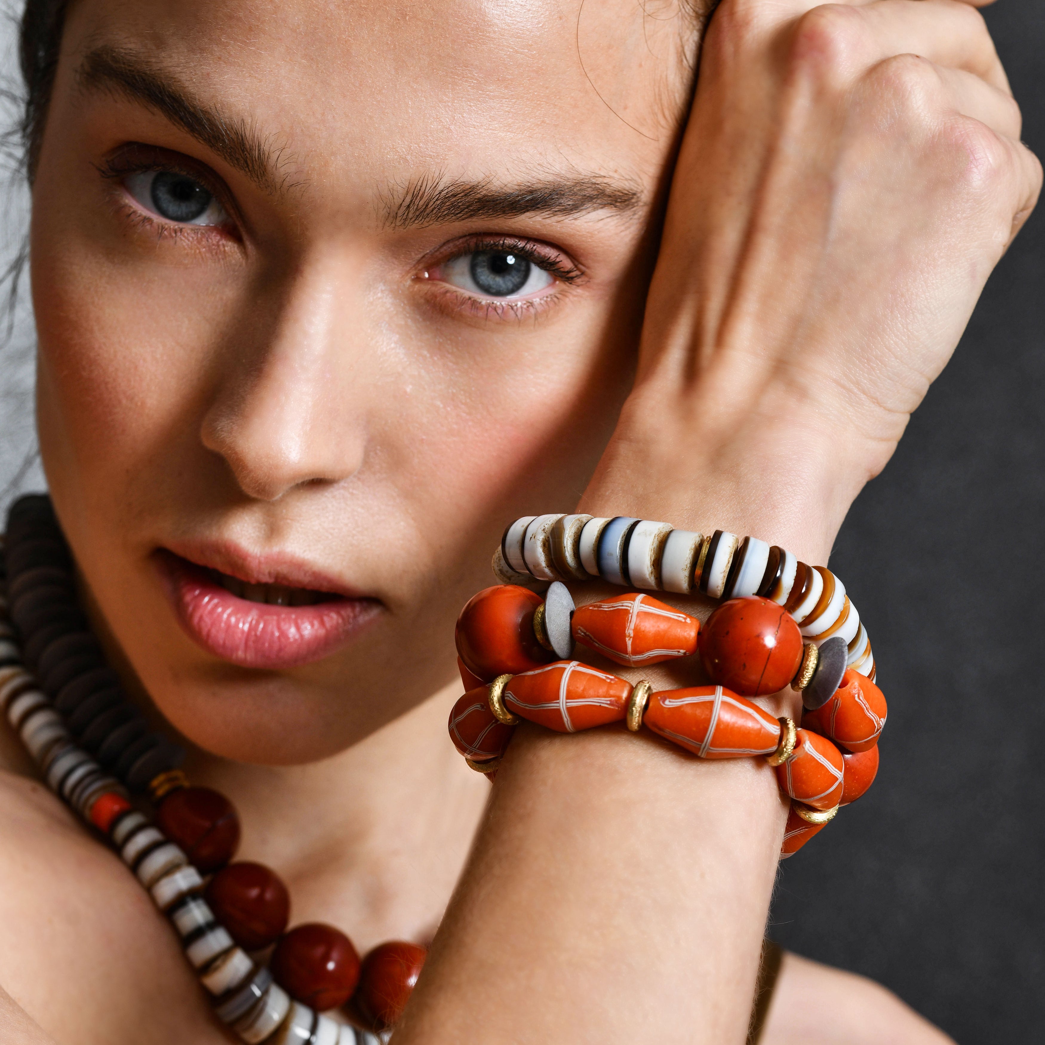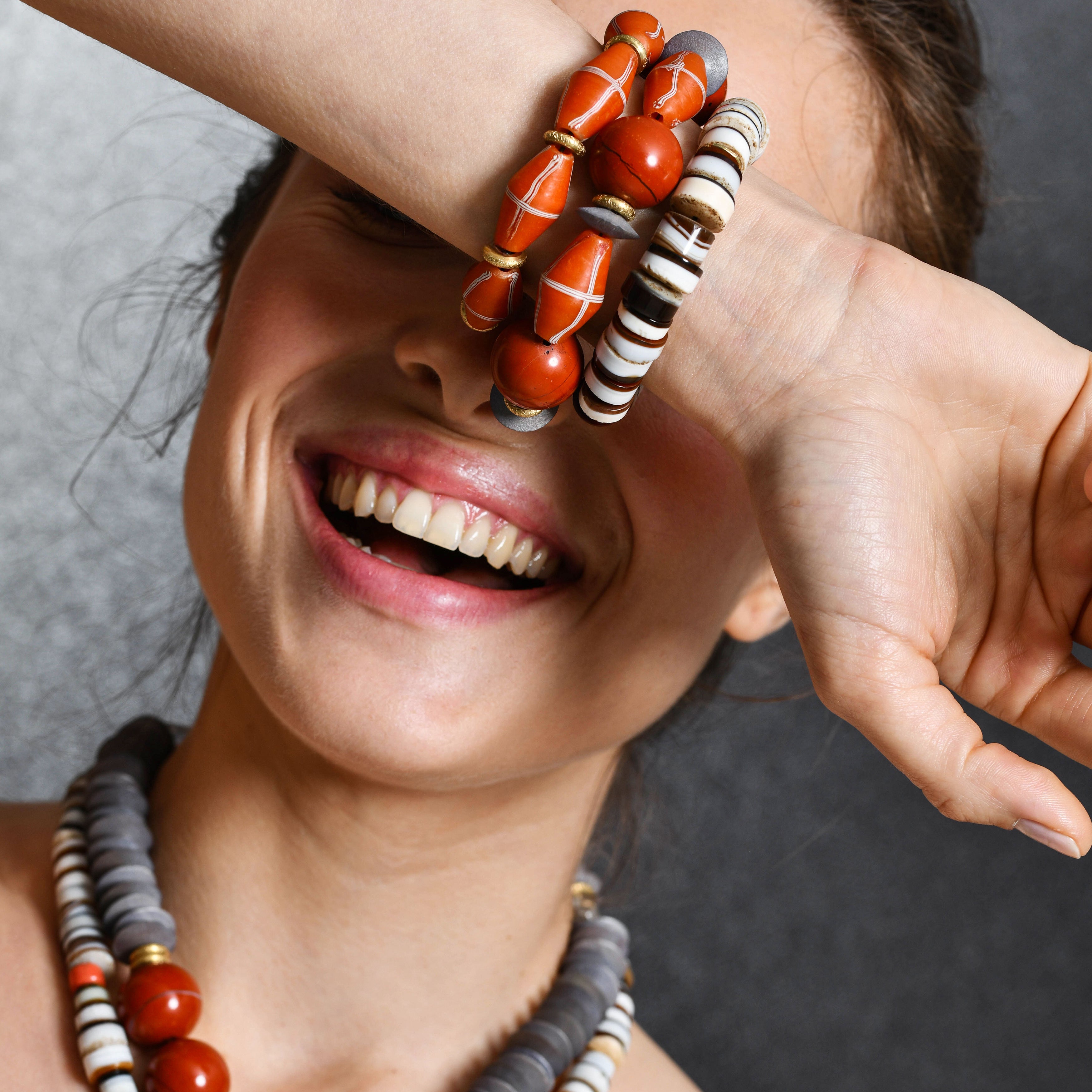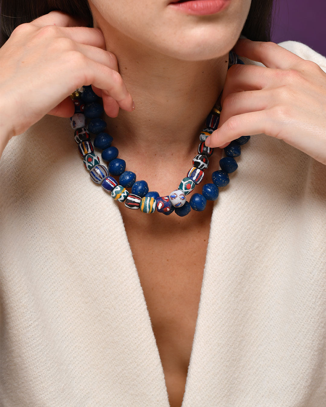 Krobo glass beads in their most unusual color combination, for a unique necklace and bracelet.