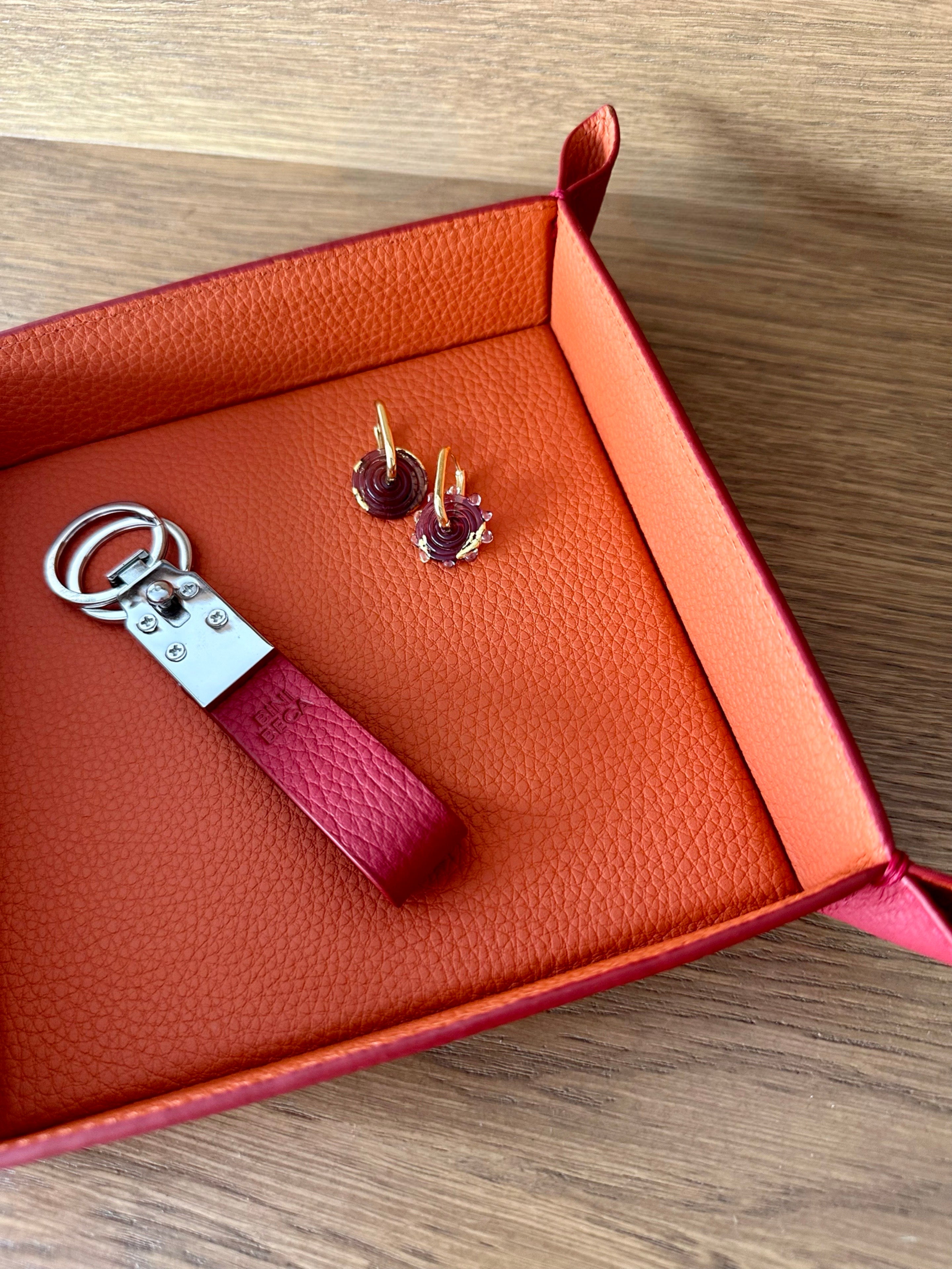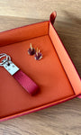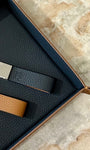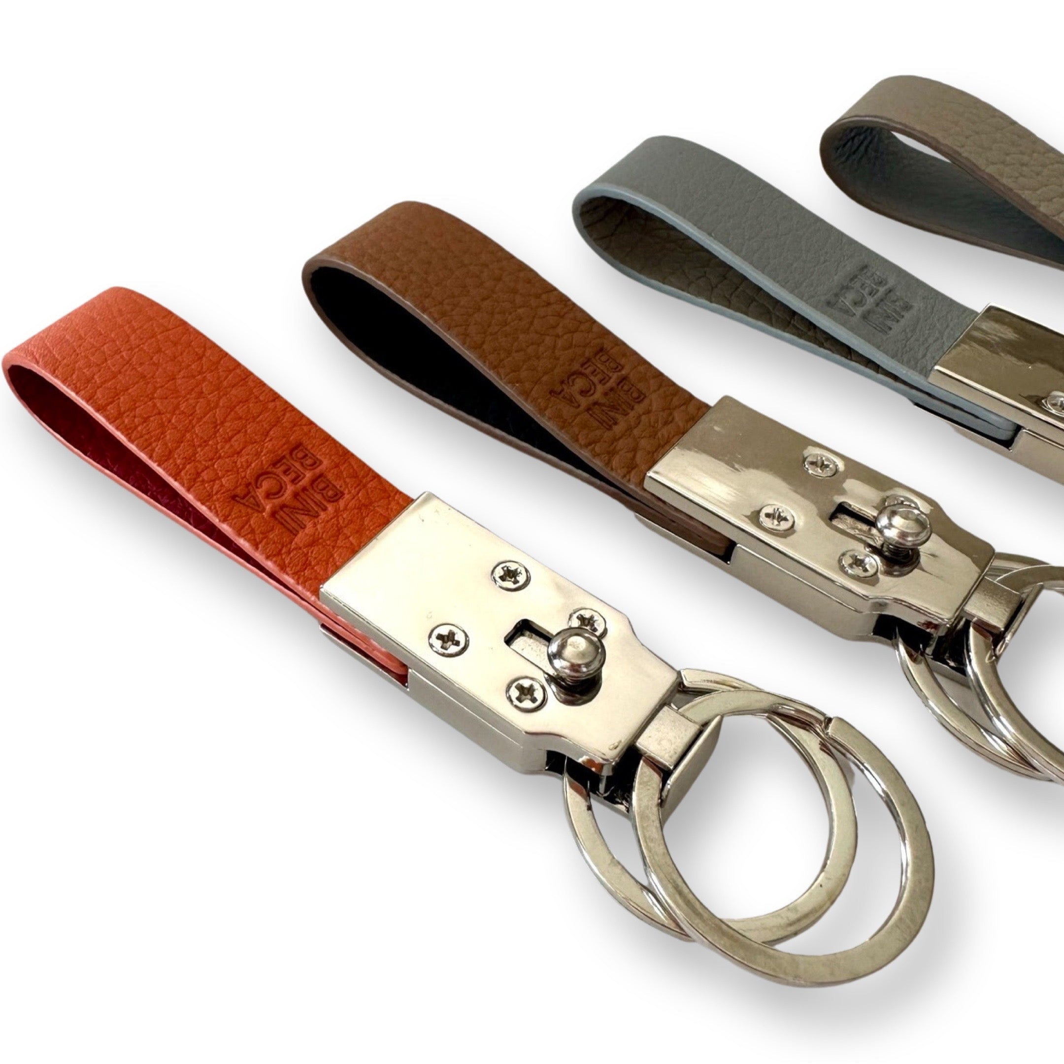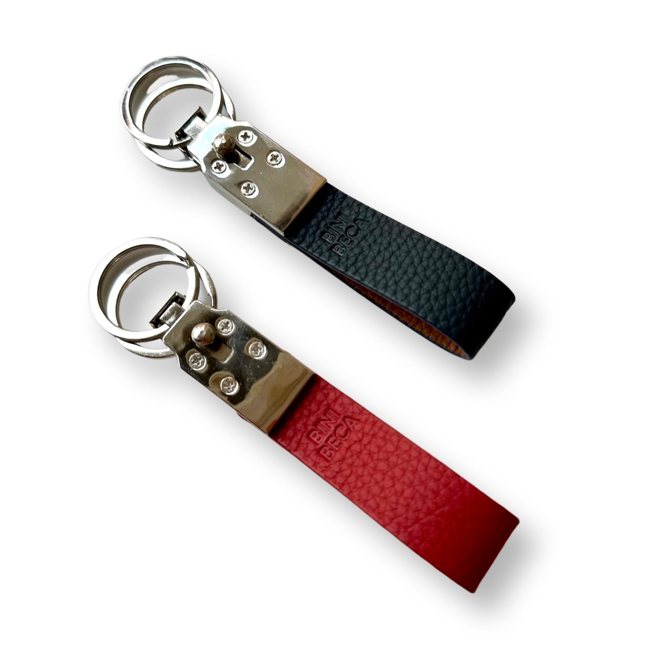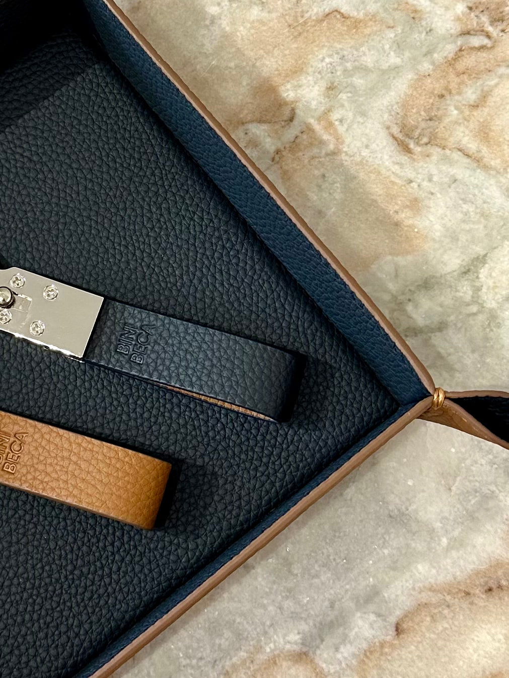The second item of our very first leather accessories collection is a 100% leather key holder with two stainless steel holders, of which one is detachable, for times when you wish to separate your keys. Imagine giving the Valet your car key and keeping the rest safely with your self.
