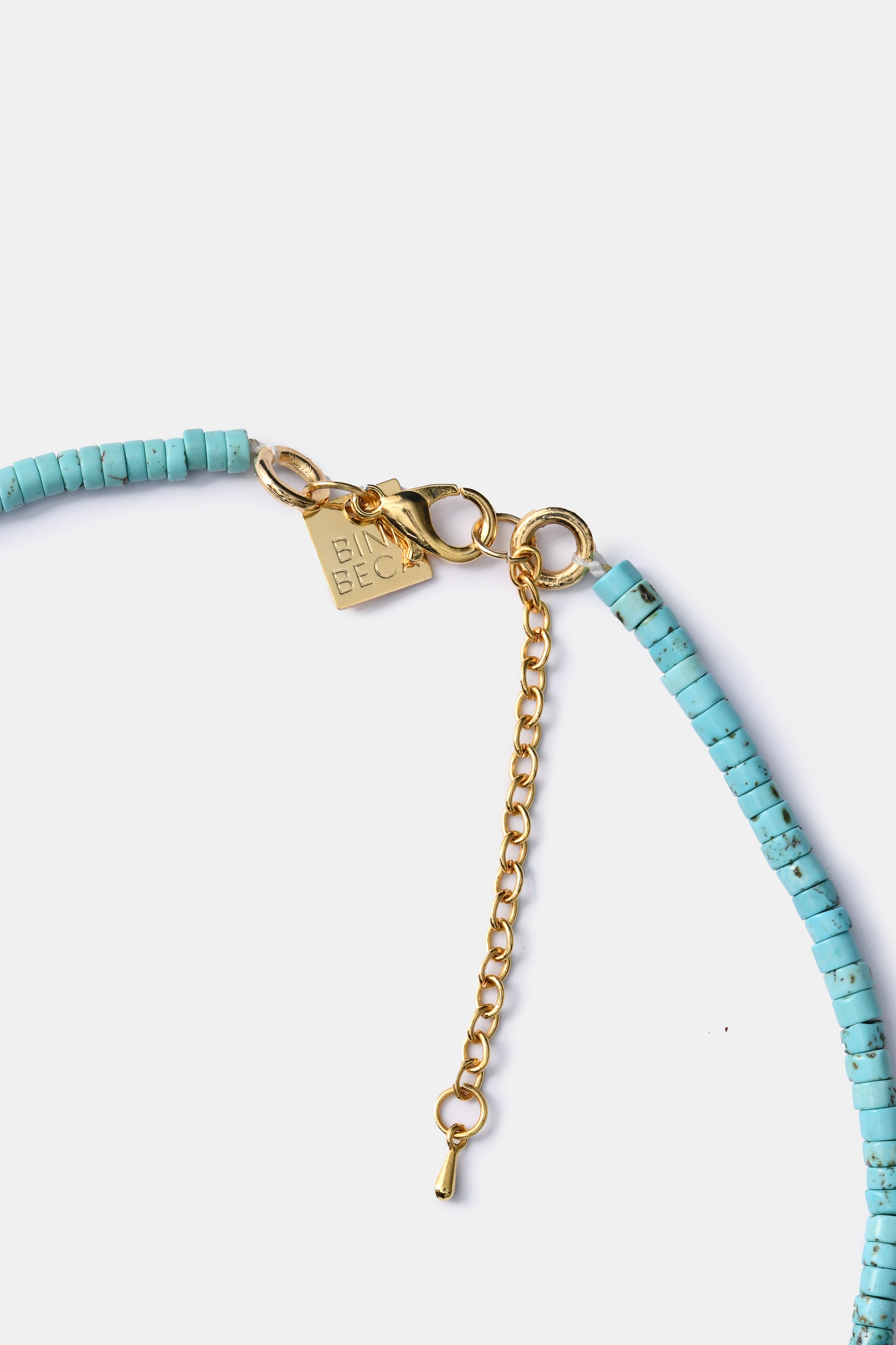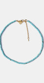 A spring summer essential, a tiny necklace that you wouldn't take off. Tiny natural turquoise beads and a gold filled clasp with extender. You will be able to choose charms to use with this necklace from our upcoming charm collection.