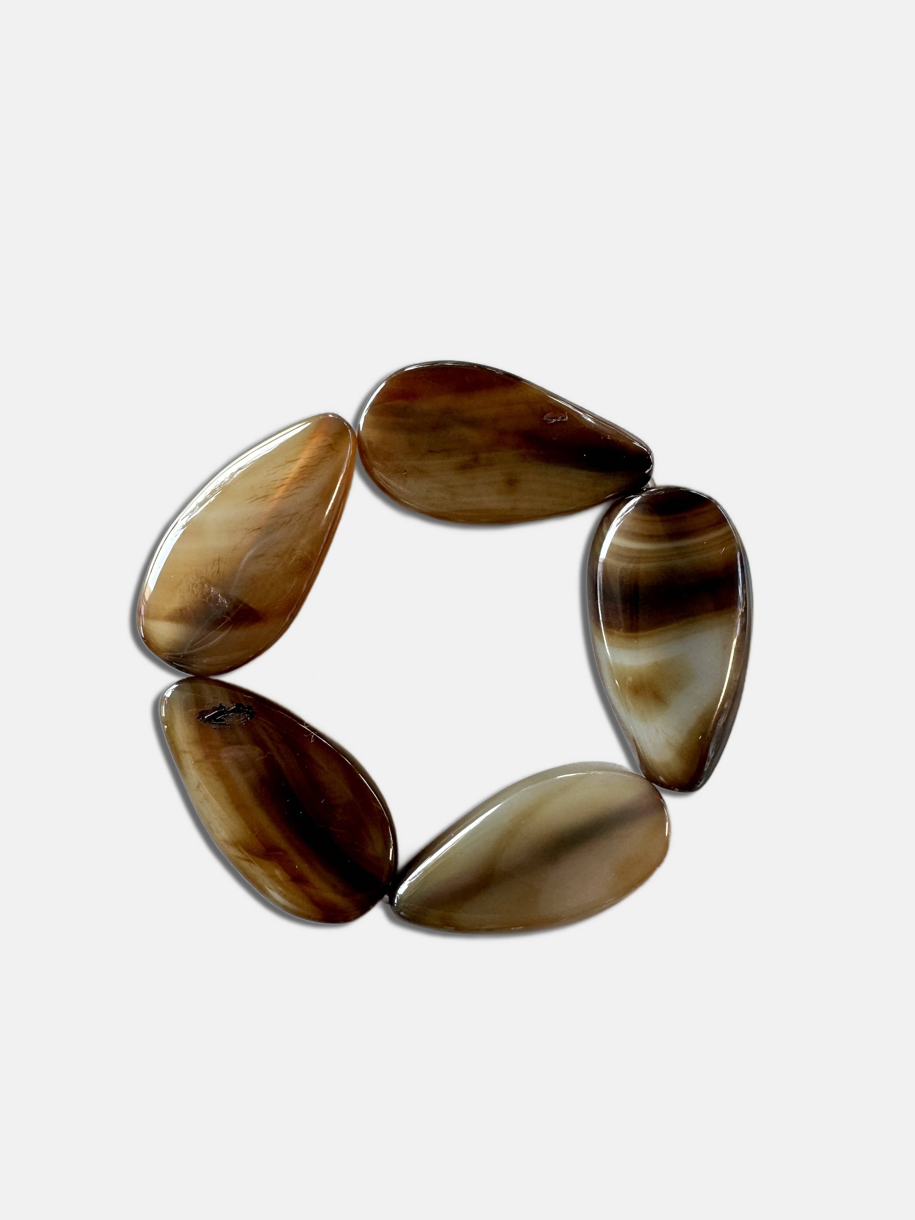 Flat natural agate stones that fit perfectly on your wrist. Best worn with the flat chrysoprase bracelet. Patterns of the stones may vary.