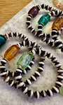 This one has b/w agates, a bright orange hero Murano bead and a Carnelian charm hand carved in Jaipur.