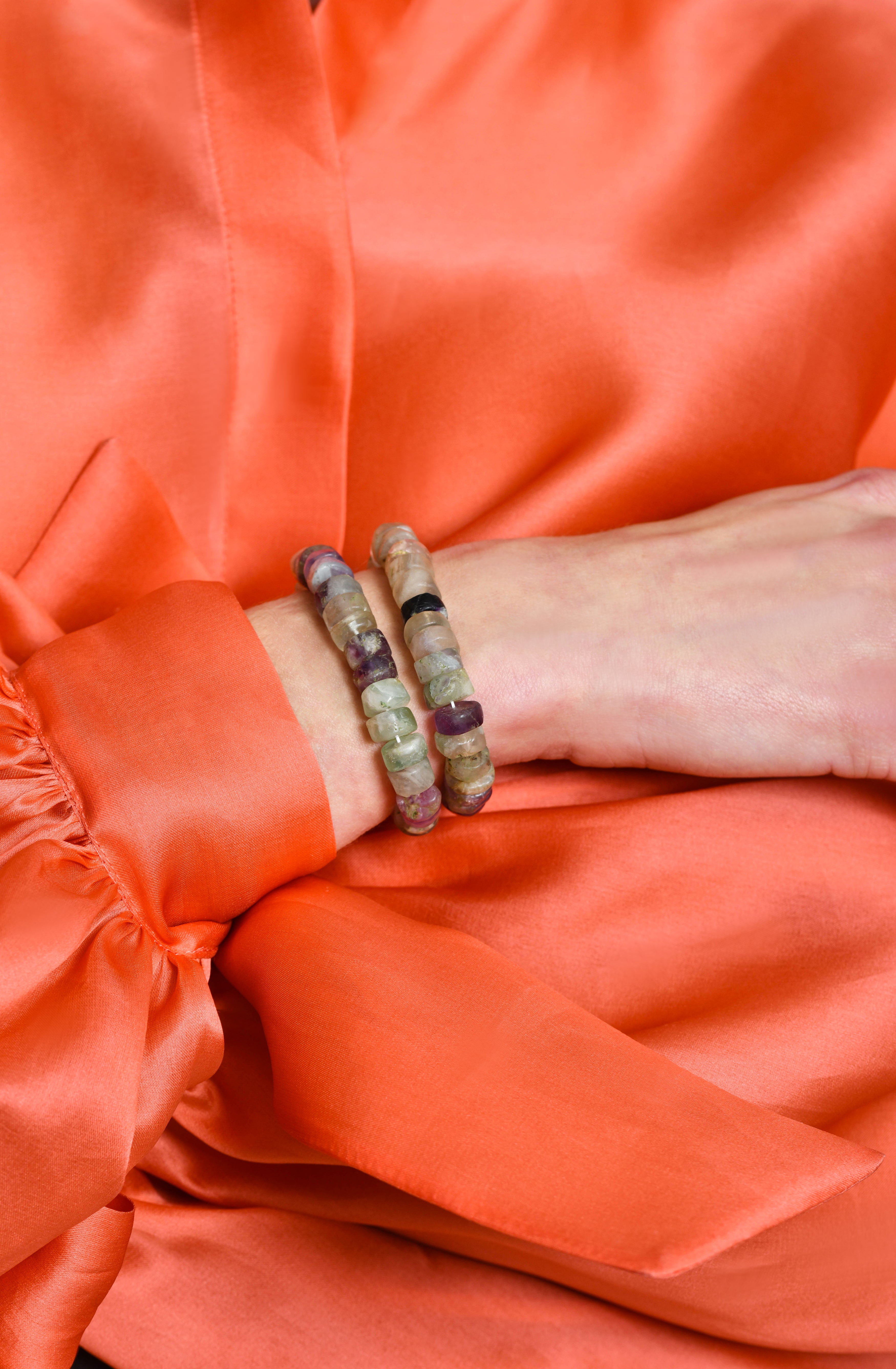 Fluorite stones medley as a simple yet very elegant bracelet. Works best as a duo.