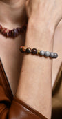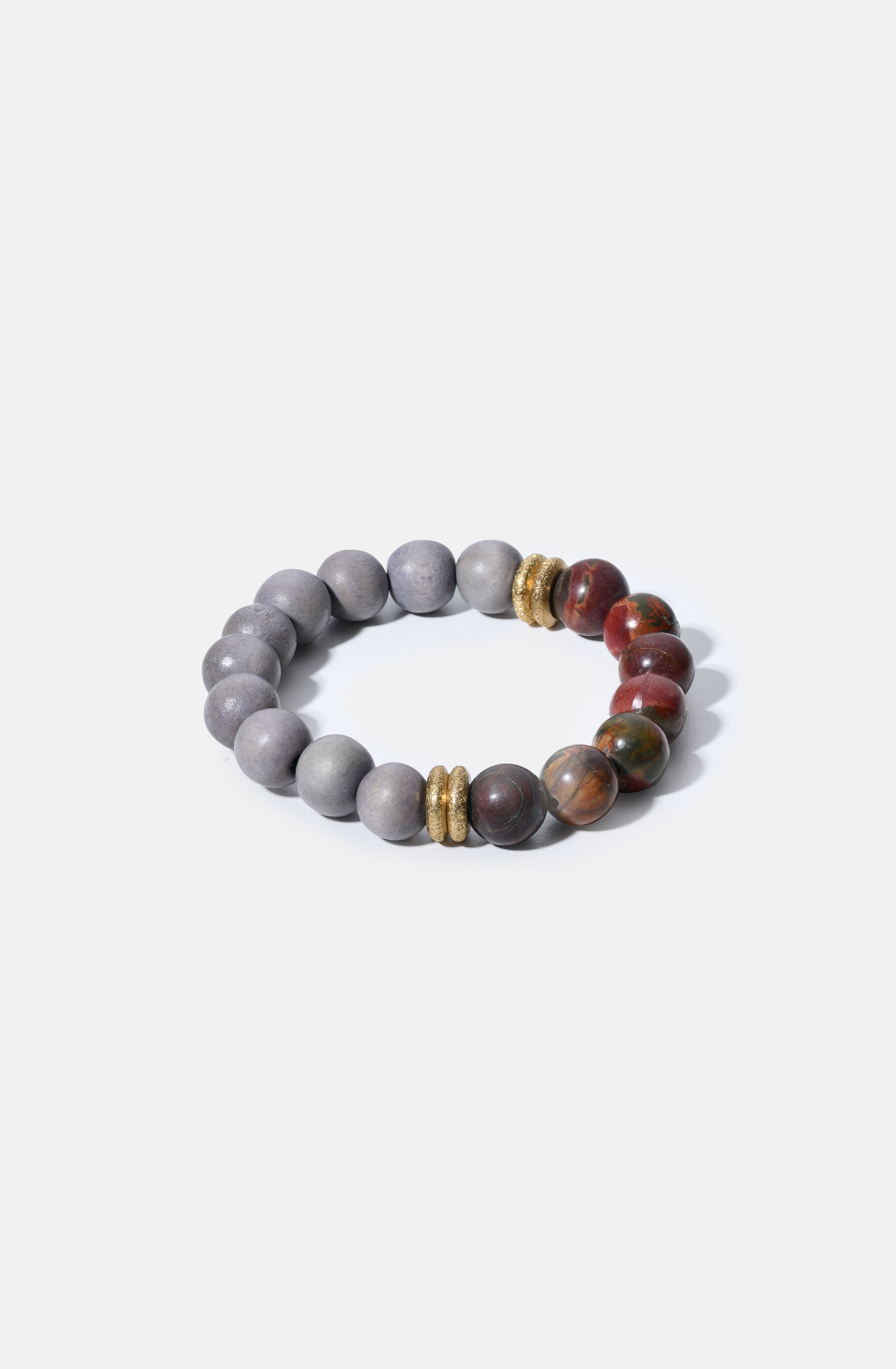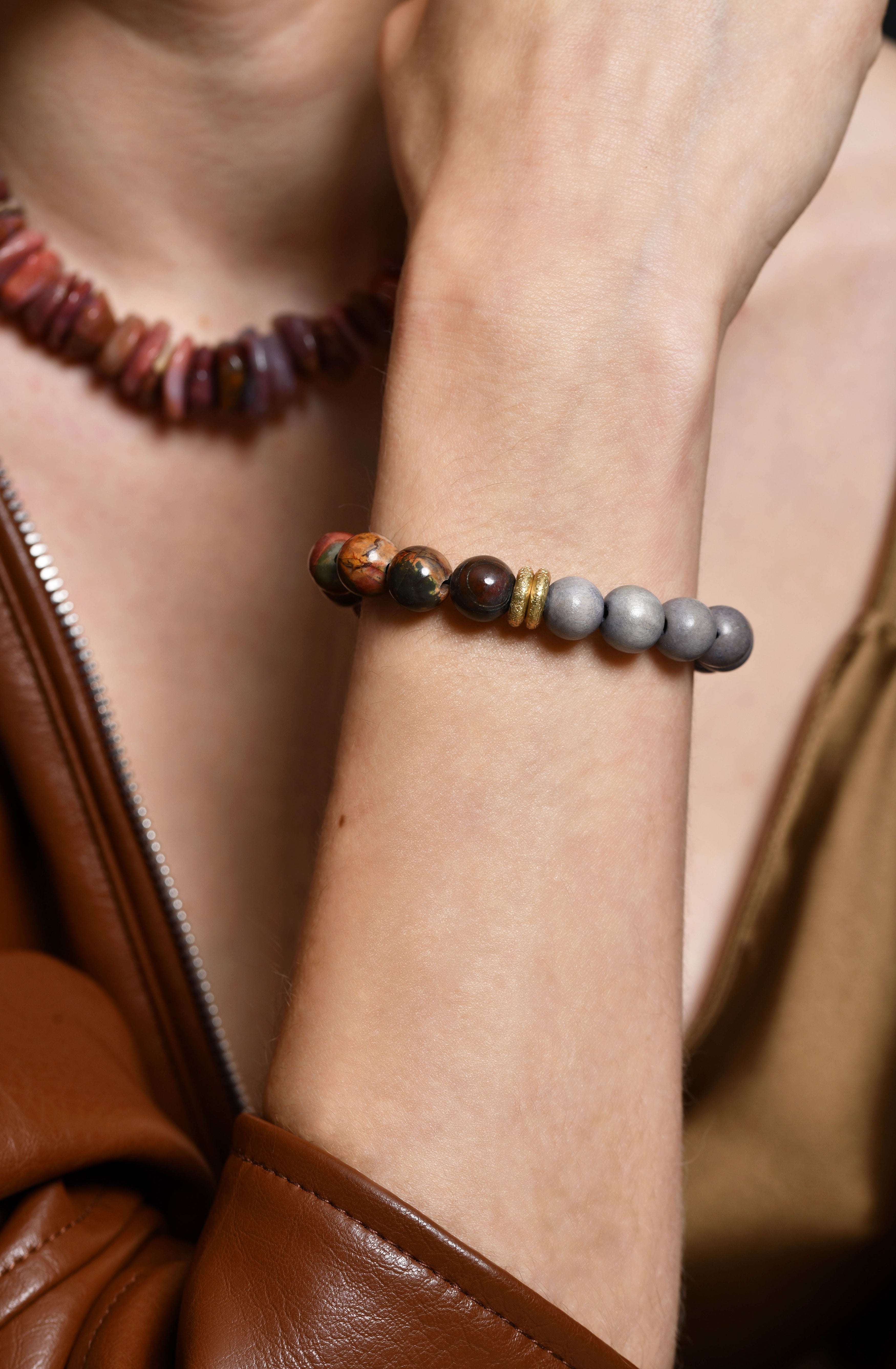 The Pilar bracelet; a new layout with small jasper beads and wooden beads in fall's best colors.