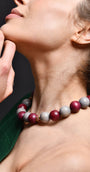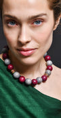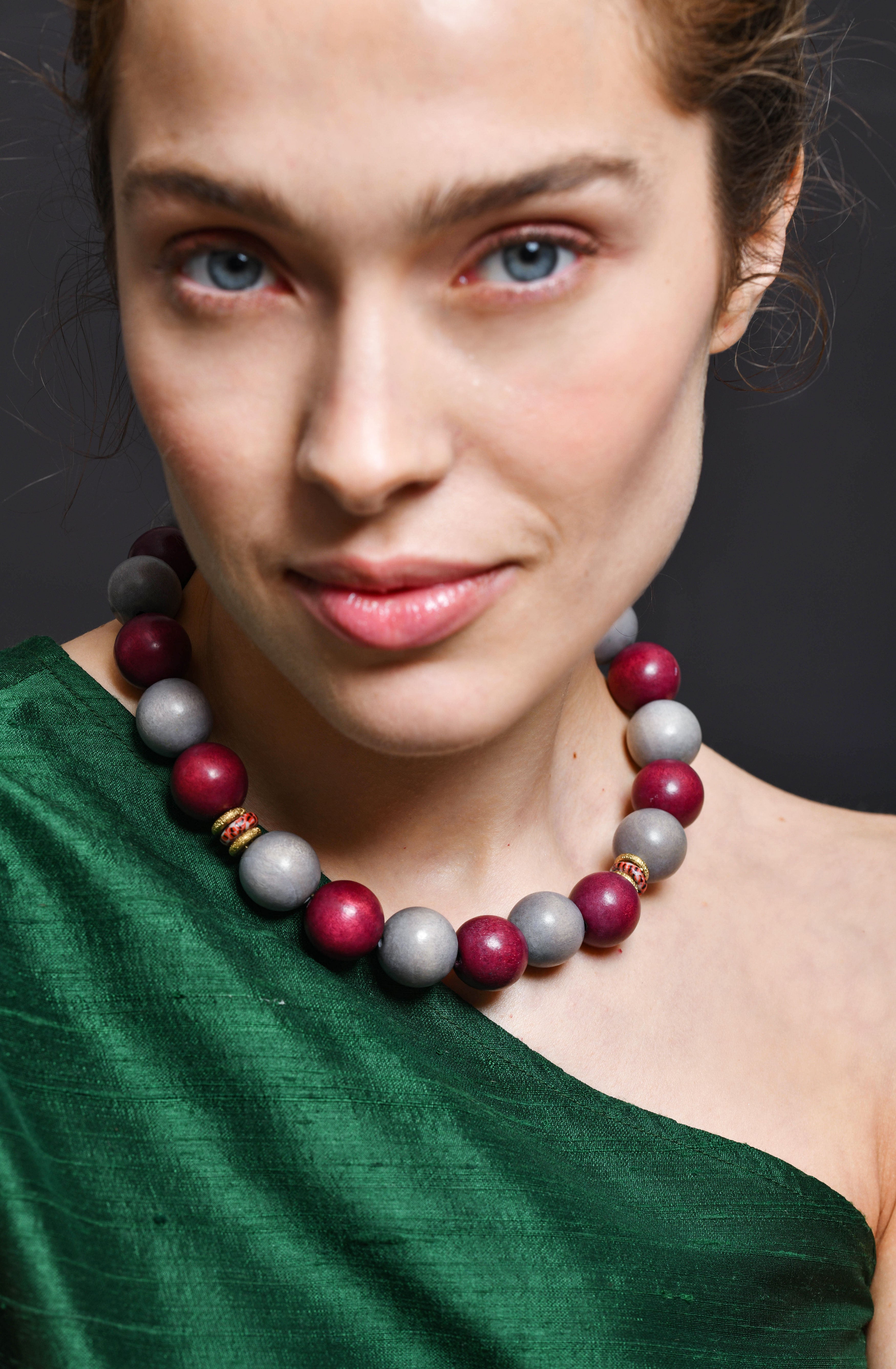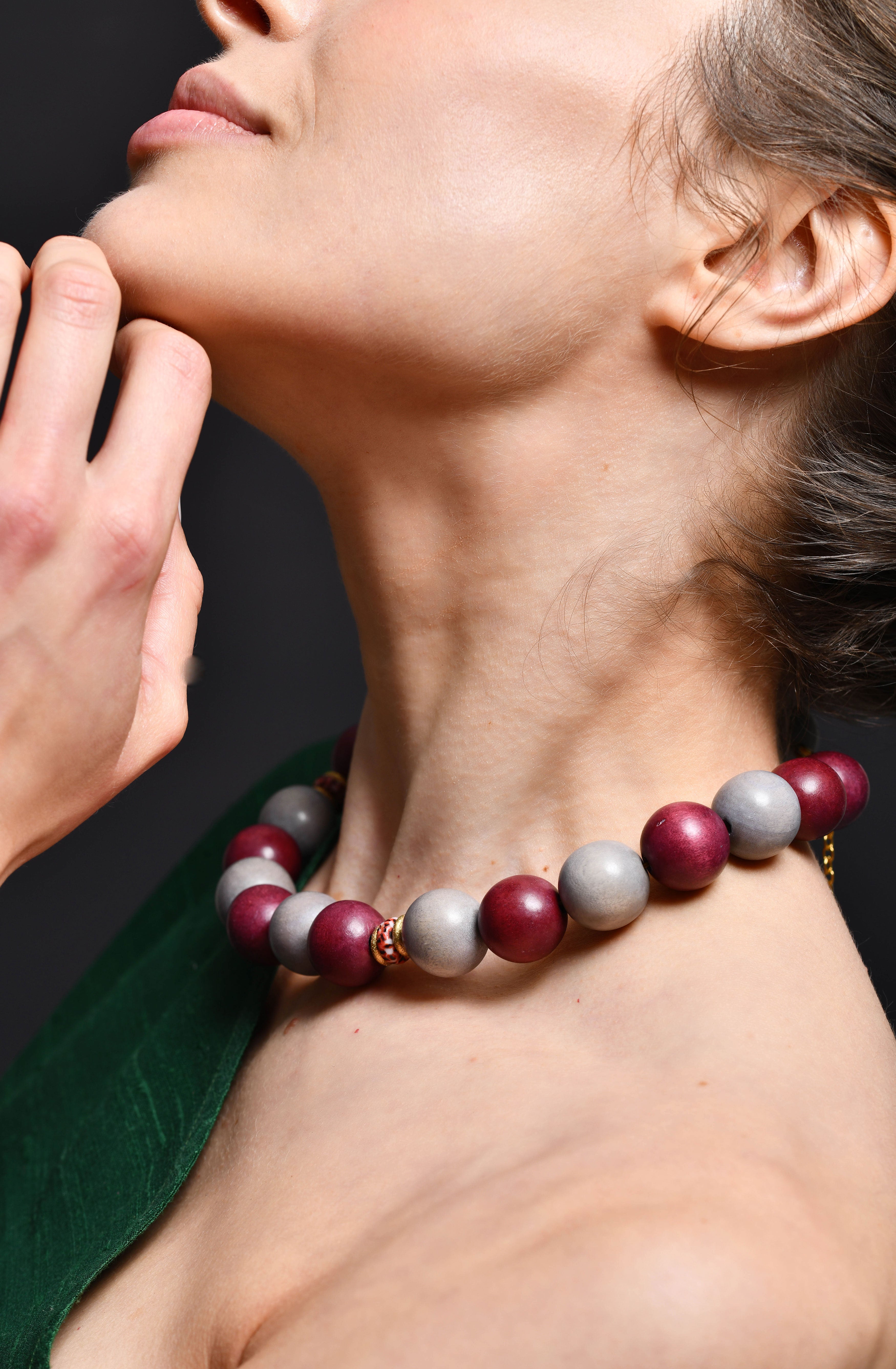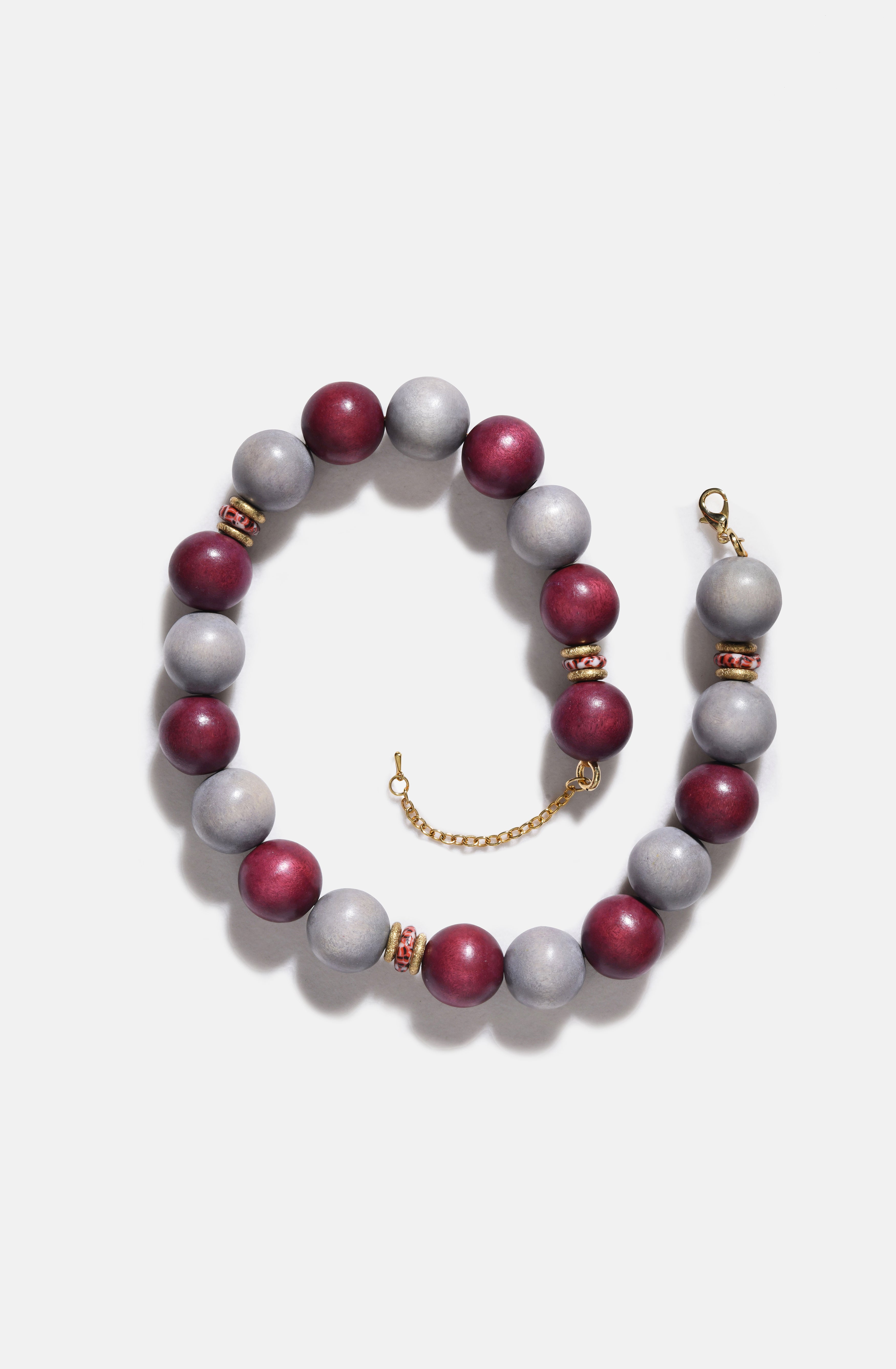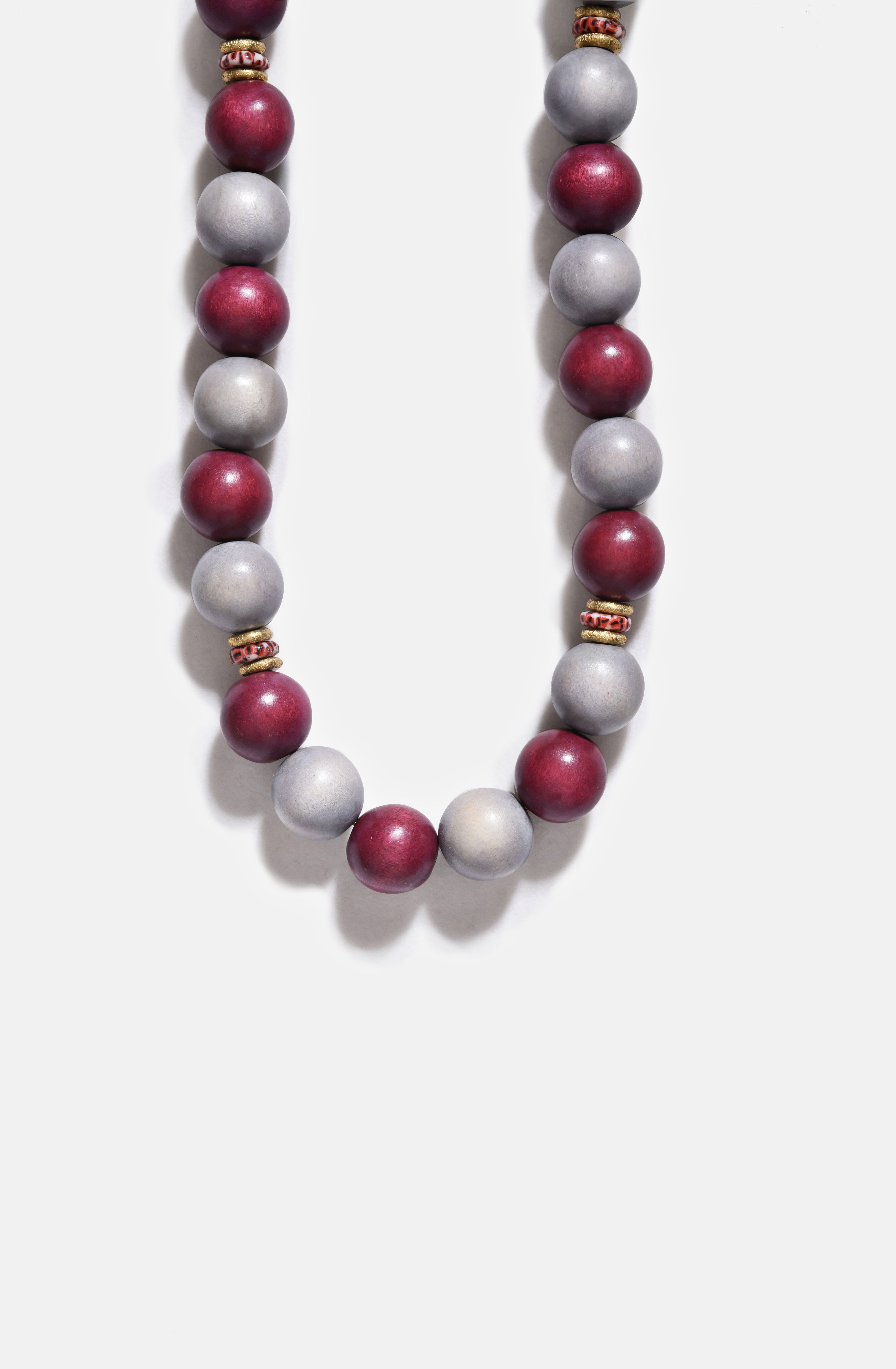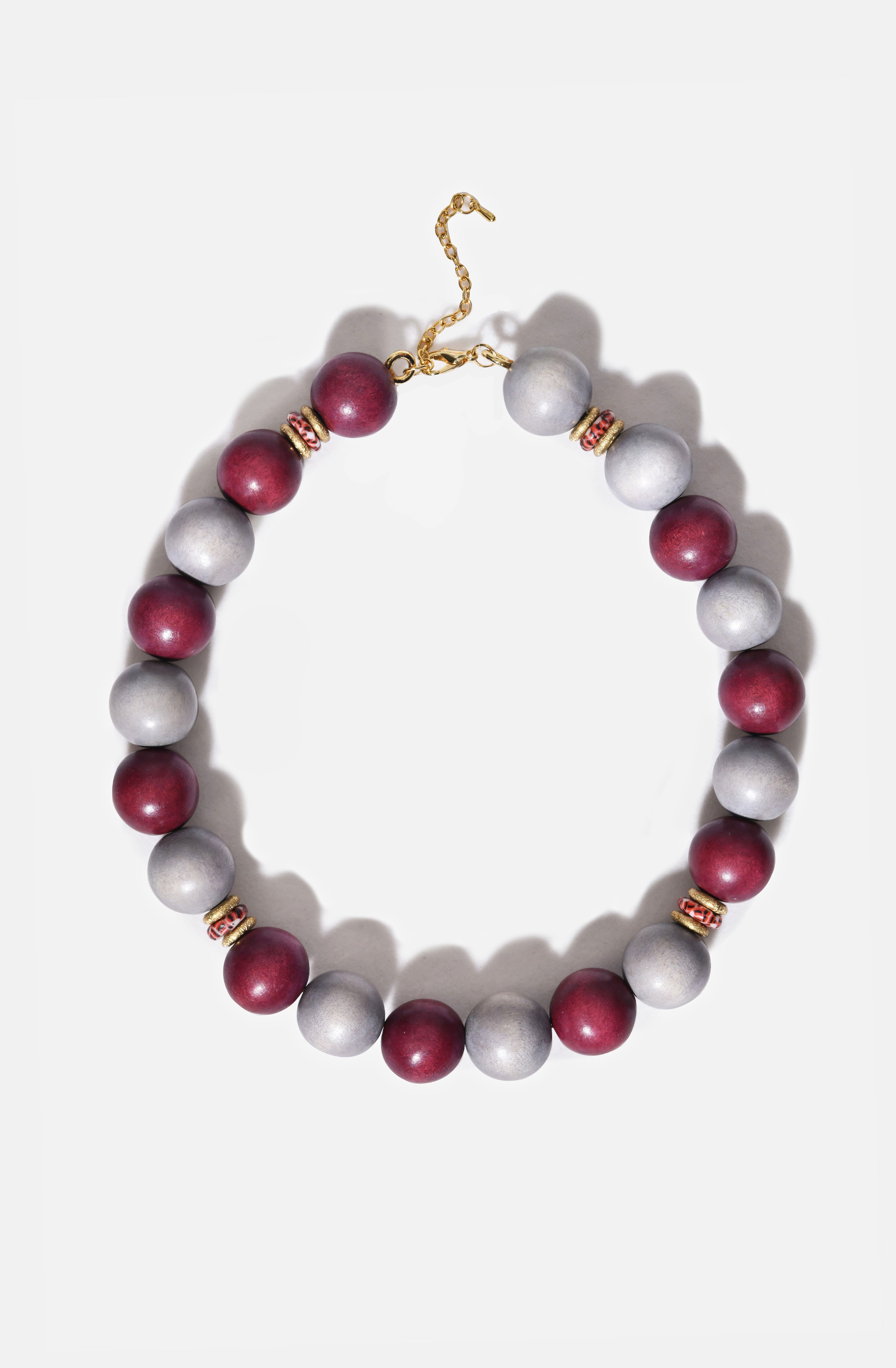 The Plume Necklace; a brand new style that looks very powerful but weighs as light as a feather. Made fully with wooden beads and glass spacers, this is BiniBeca's new star.
