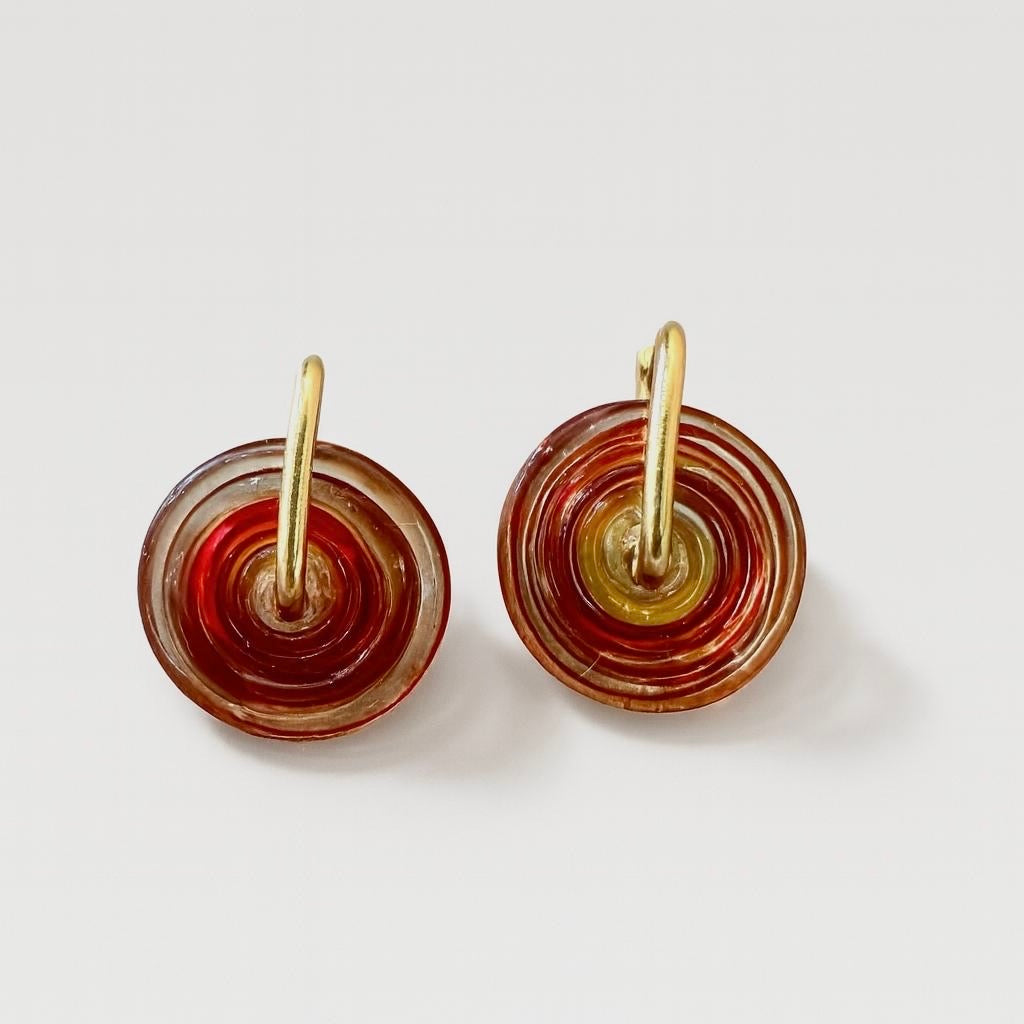 Handmade Murano glass circles and gold plated clips.