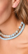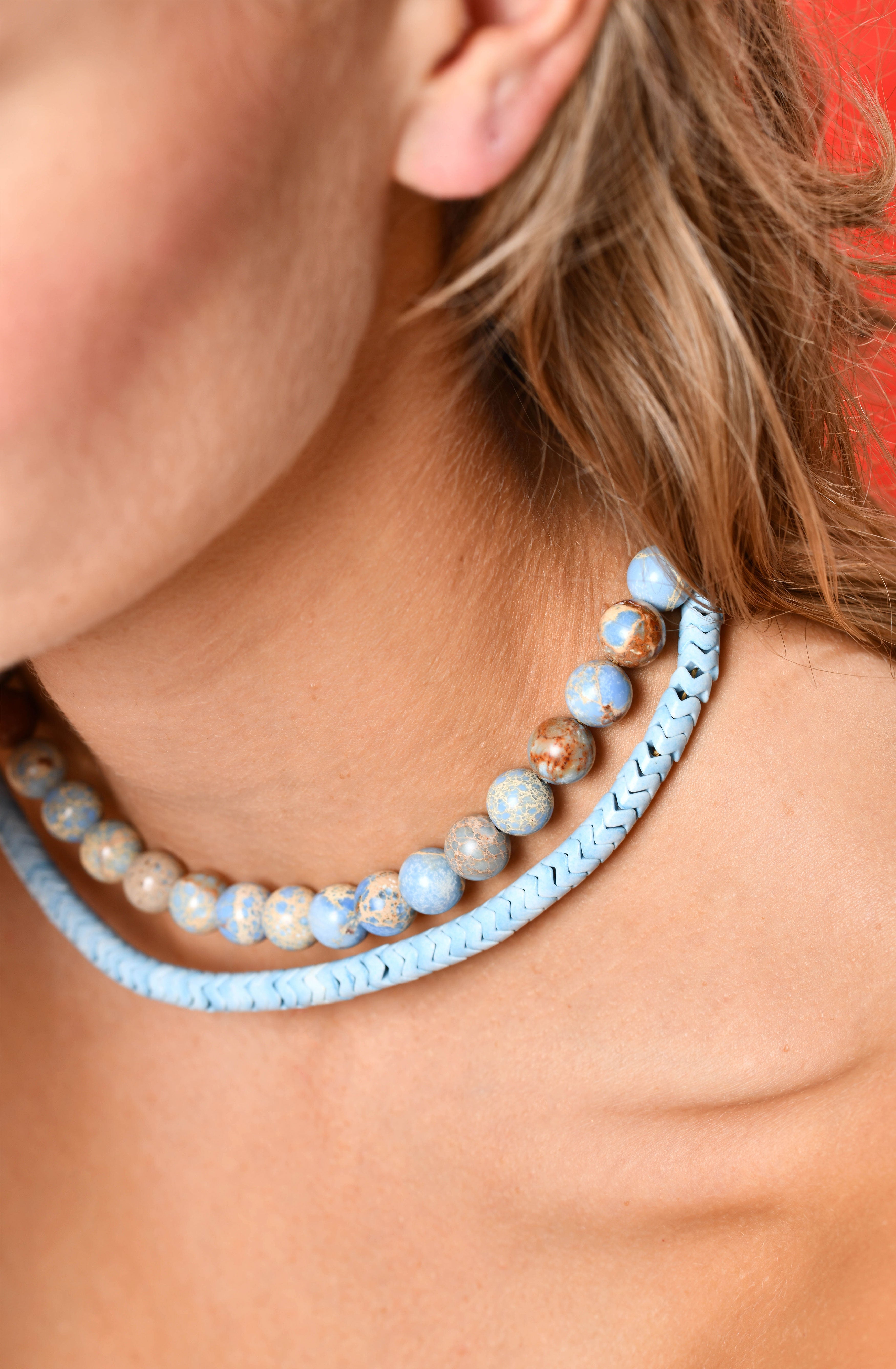 Our classic serpent agate necklace in light blue, perfect piece to match your every day summer stacks.