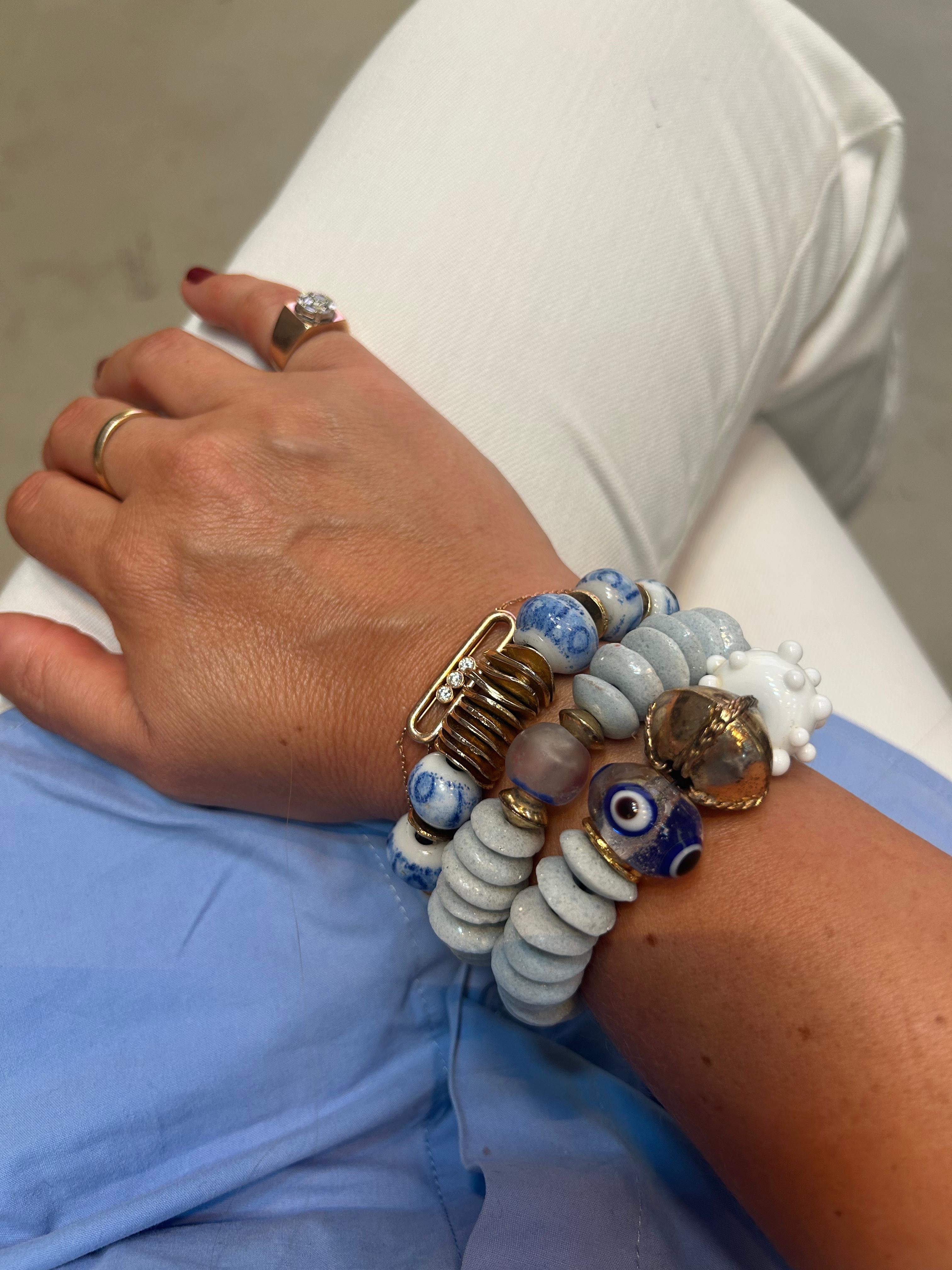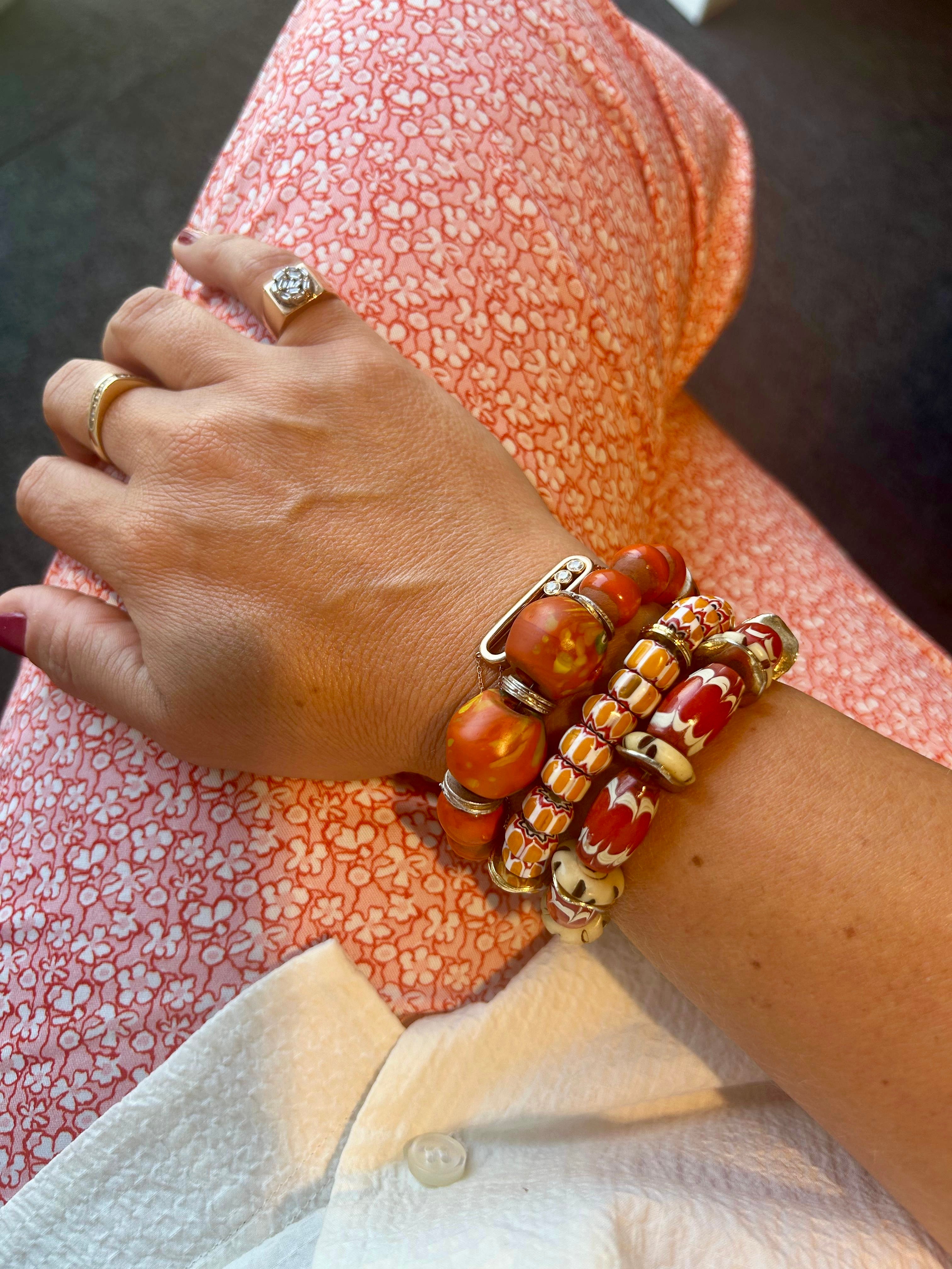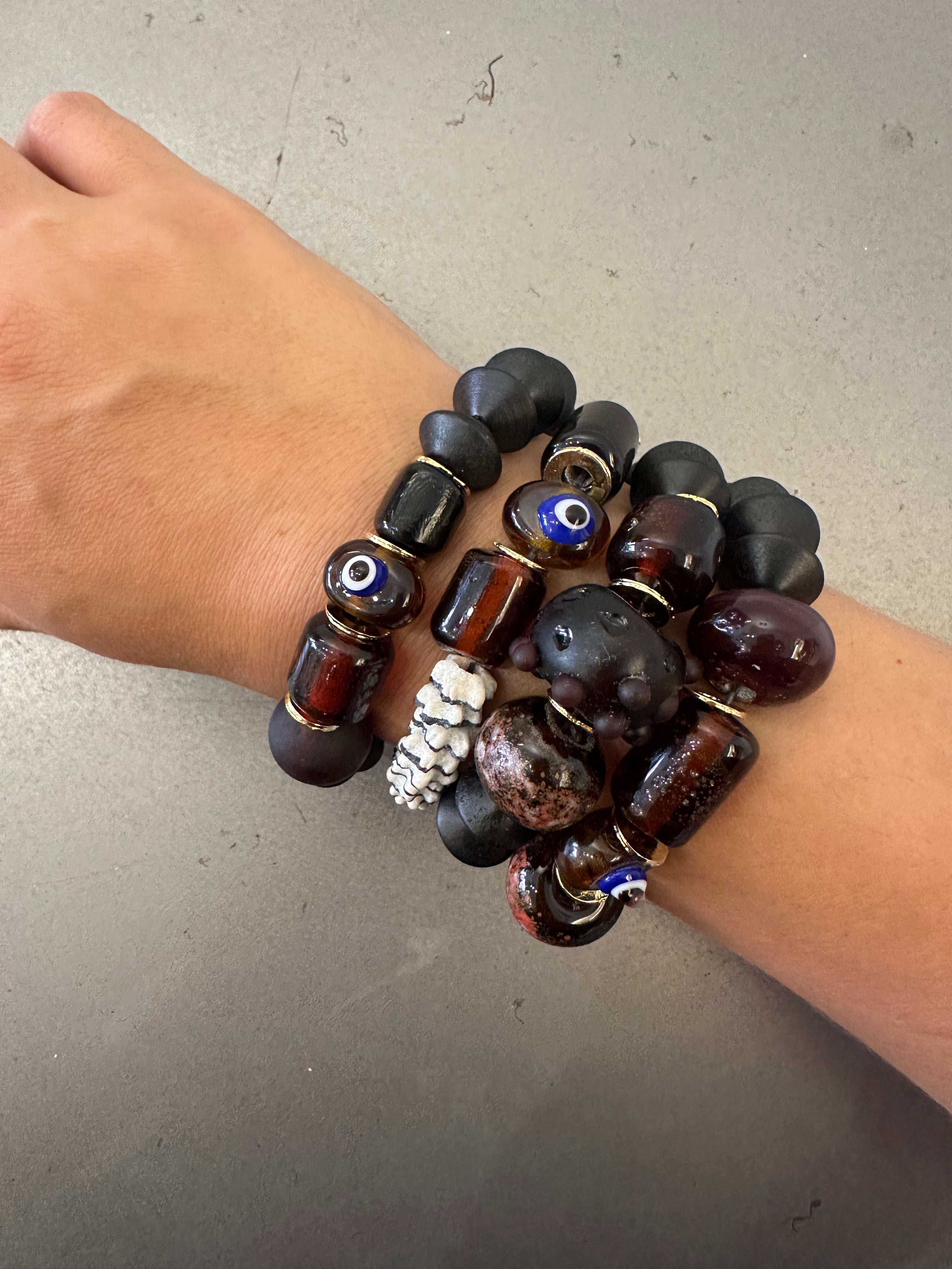 Here is the second online drop of our Artizaan recycled glass bracelets, made with recycled glass, Murano glass, gold or silver plated separators and additional organic materials. Each bracelet is unique, and not to be repeated.