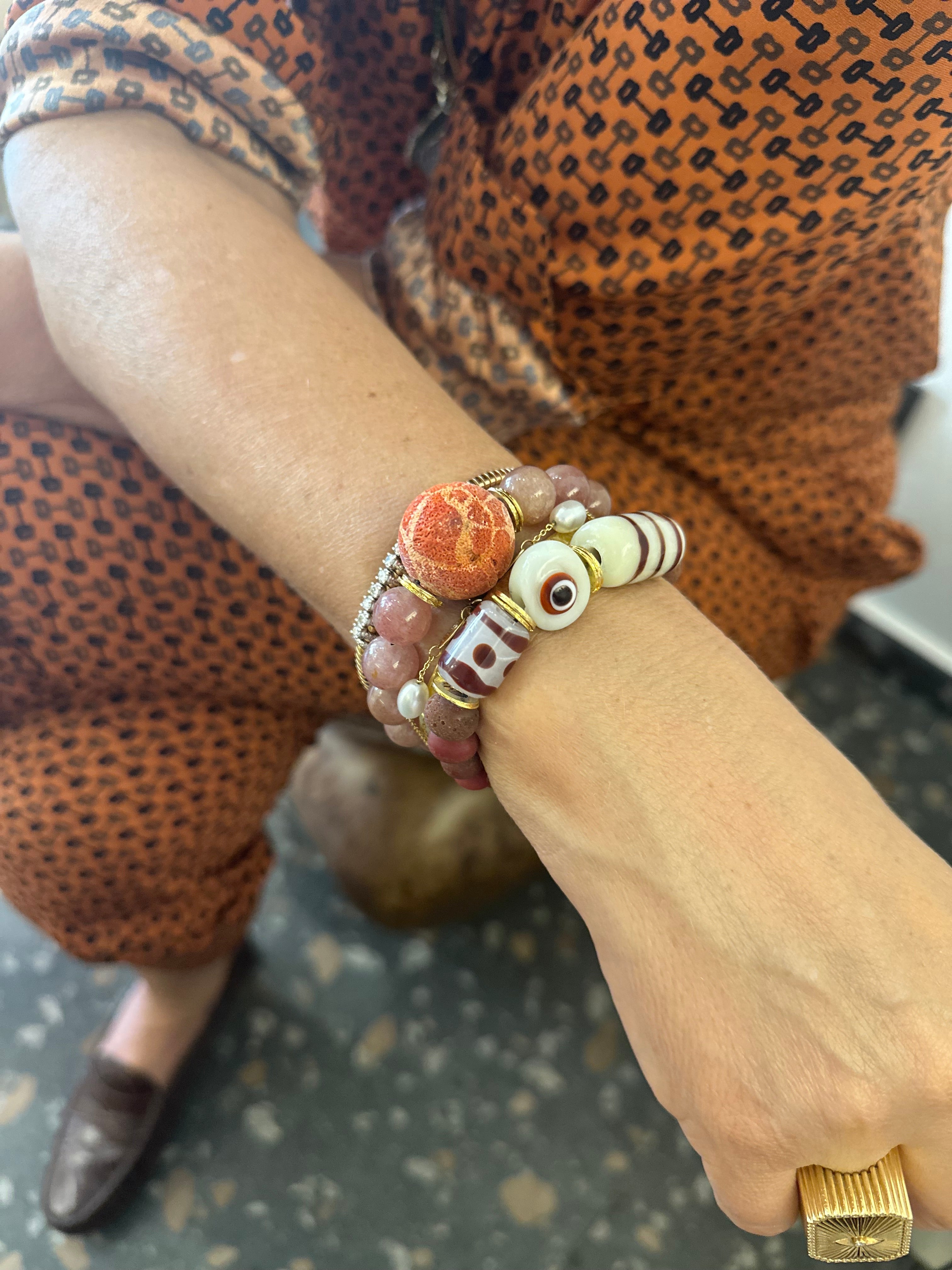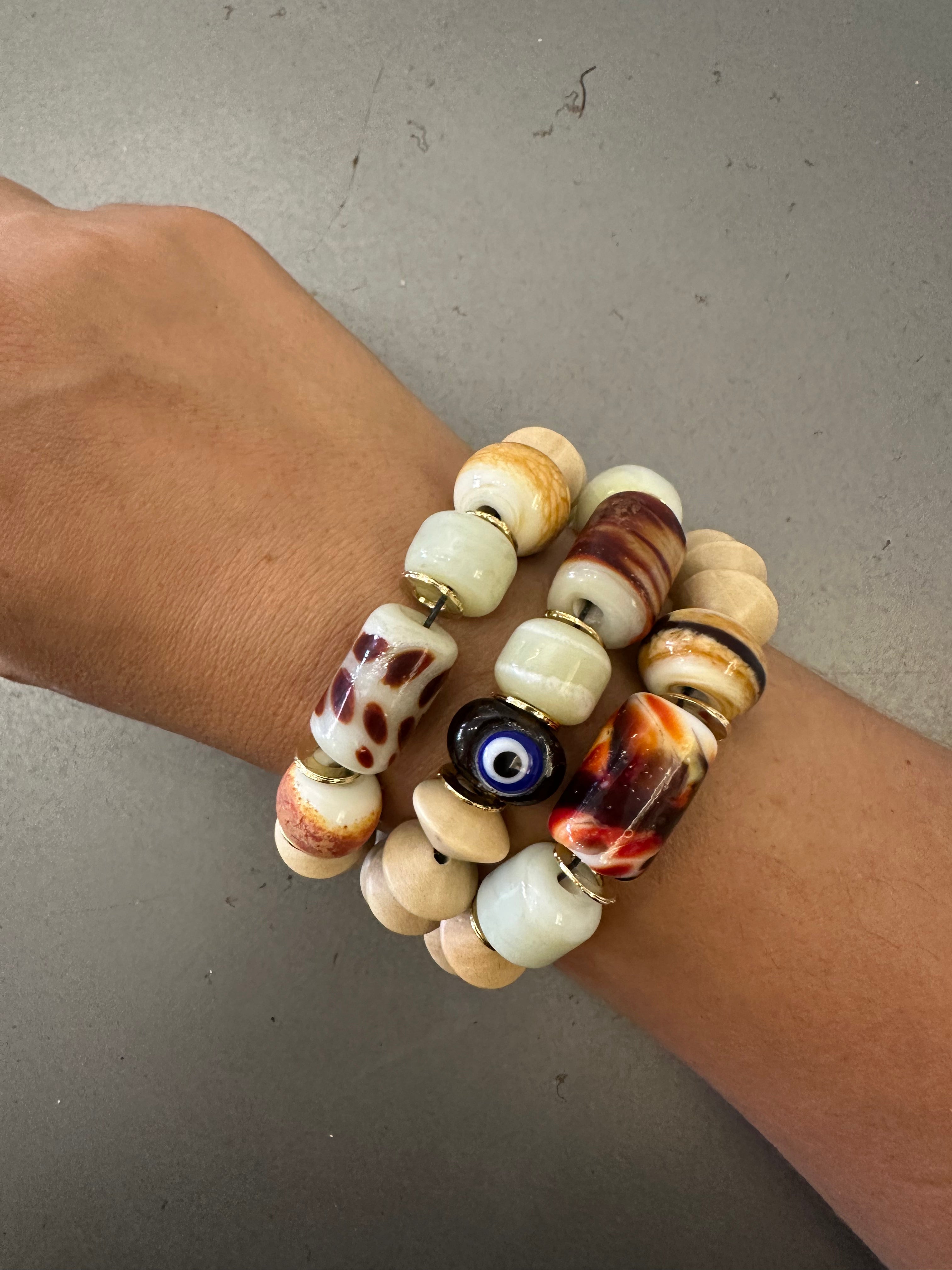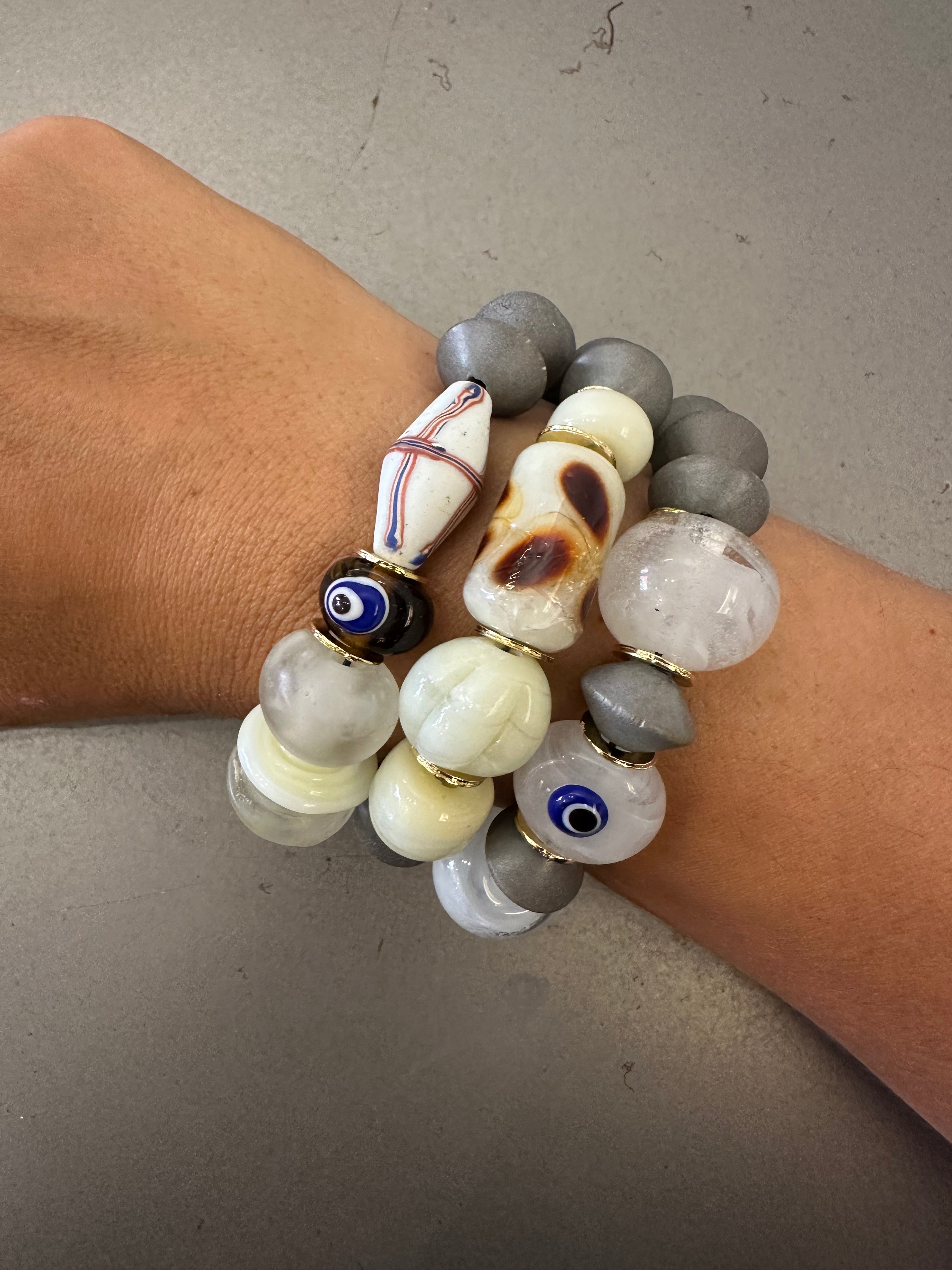 Here is the second online drop of our Artizaan recycled glass bracelets, made with recycled glass, Murano glass, gold or silver plated separators and additional organic materials. Each bracelet is unique, and not to be repeated.