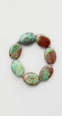 Pierres plates en chrysoprase naturelle qui s'adaptent parfaitement à votre poignet avec des entretoises plaquées argent.