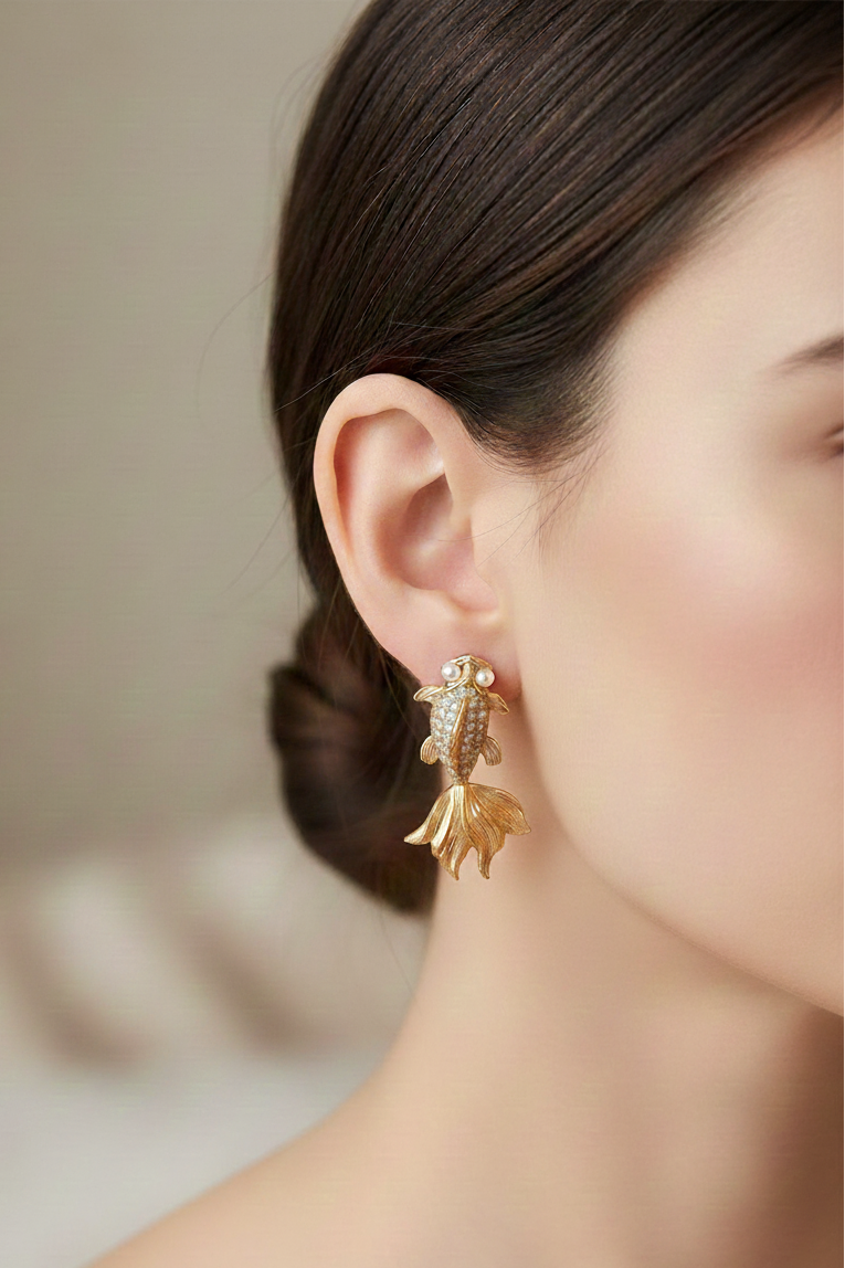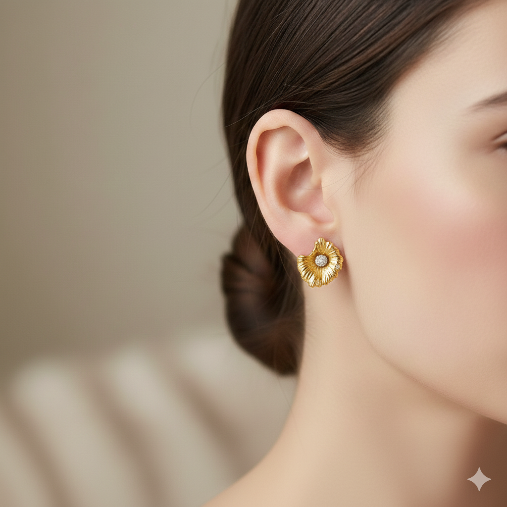 Beş çift şık, bakır üzeri altın kaplama pin küpe.
