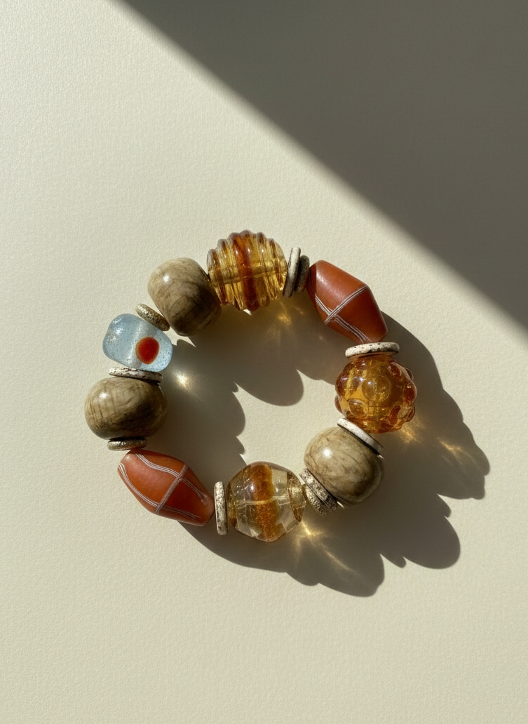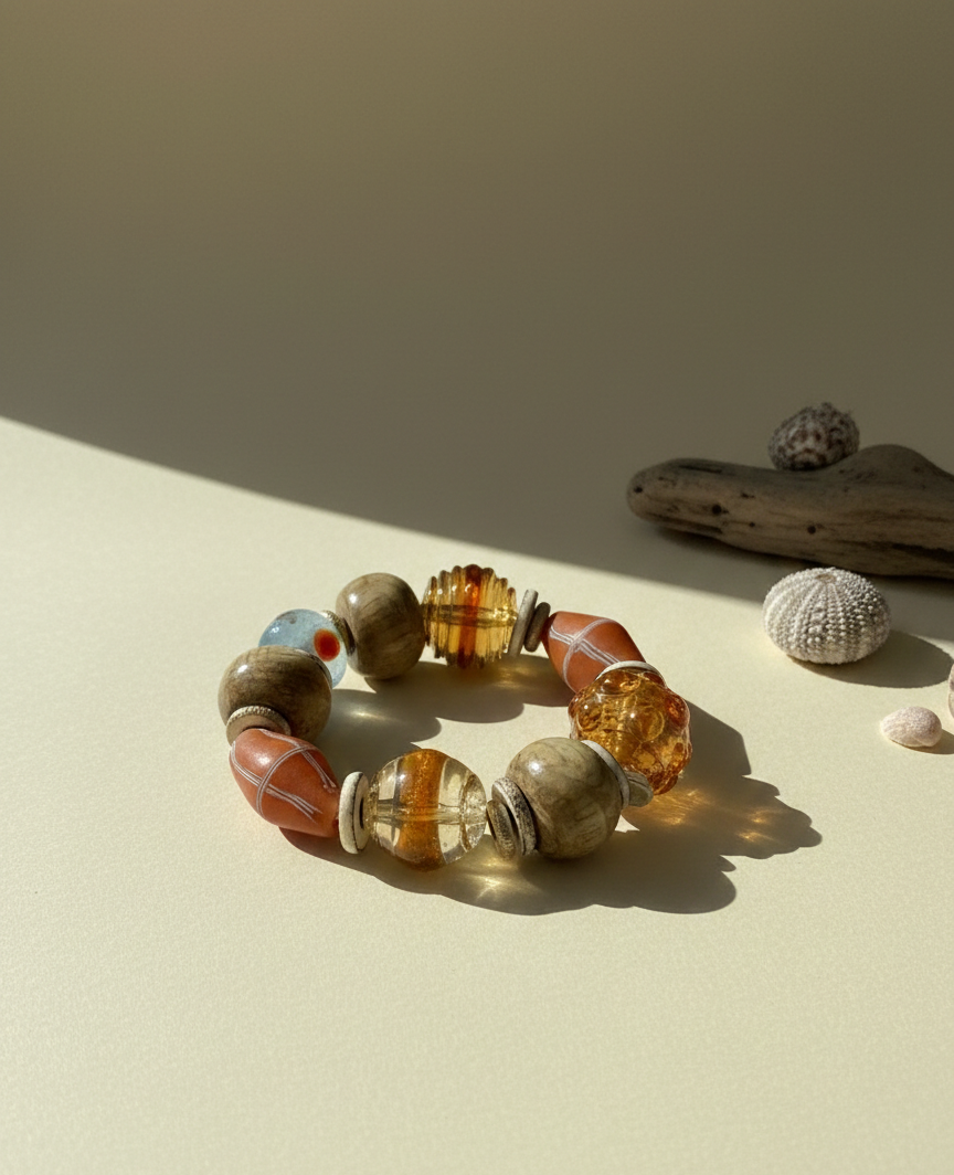 Kemik, cam ve özel metallerin bir arada kullanıldığı her biri tek olan yepyeni ürünler. Tasarımcının favorisi olan bu bilekliklerin her biri eşsiz!